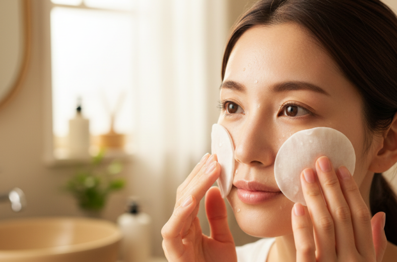 お肌が柔らかくほぐれたら、次は水分を徹底的に補給します。 手でパシャパシャとつけるだけでは、秋の乾燥した肌には不十分。そこでおすすめなのが、コットンを使った**「ローションパック」**です。